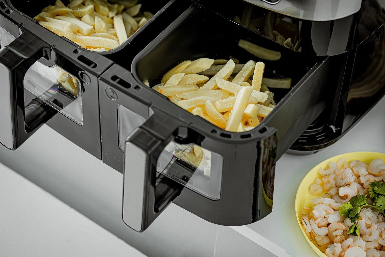 - Dual Basket Design: Prepare two different meals simultaneously without flavor mixing.