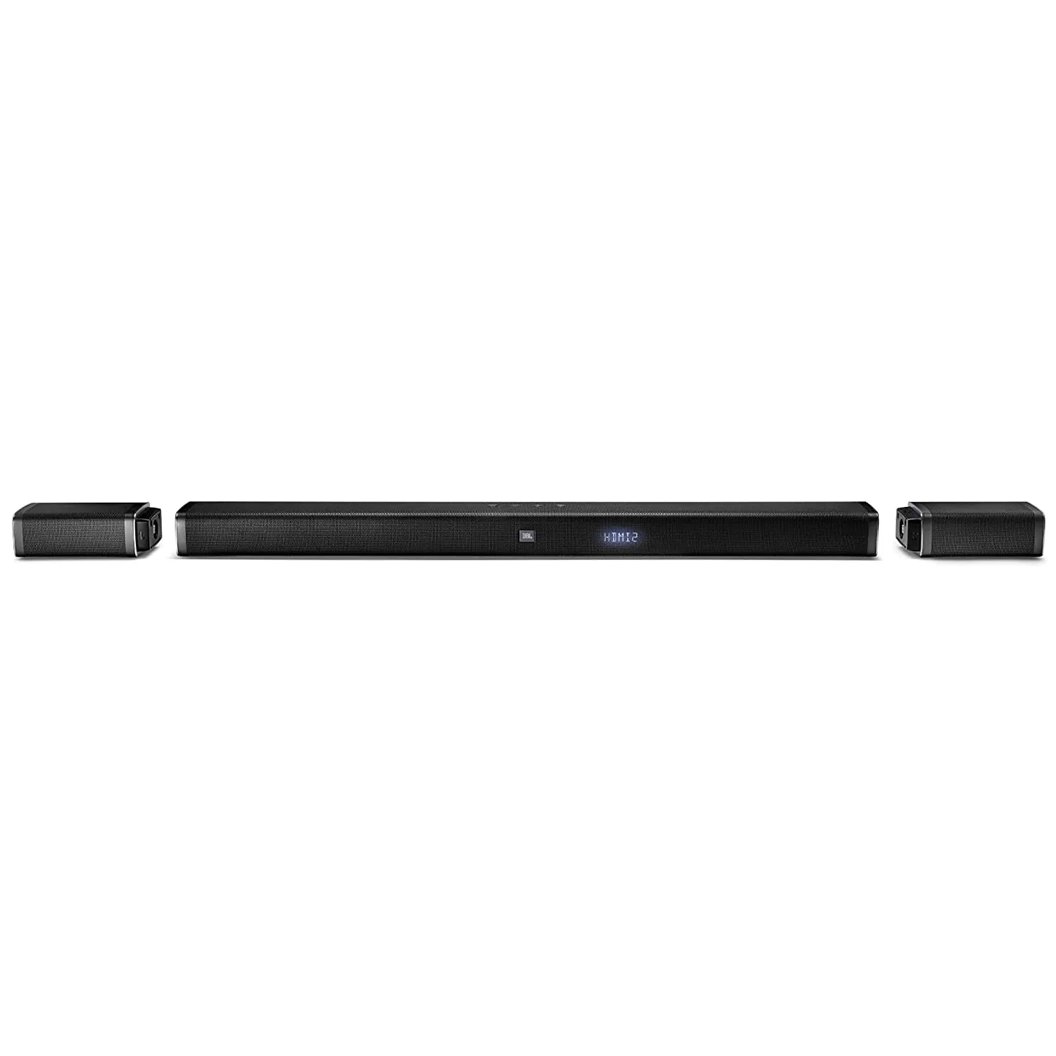 The JBL Bar 5.1 transforms from a soundbar into a true wireless 5.1 home theater system for an epic movie and music-listening experience. The soundbar features two detachable battery powered wireless surround speakers with 10-hours of playtime, 510W of total system power, a 10” wireless subwoofer, three HDMI inputs to connect 4K devices and Bluetooth allows sound switch between With Dolby Digital Pro Logic II and DTS, with incredible sound .